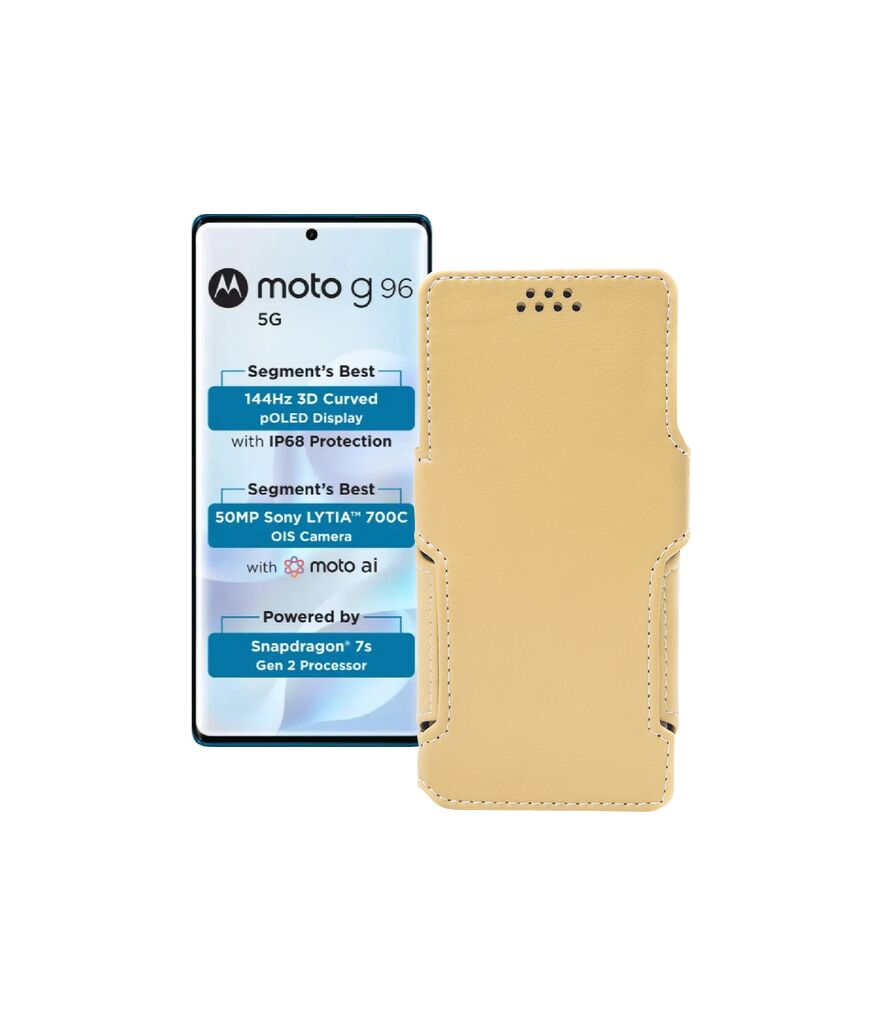 Якщо Вам потрібний надійний, стильний та довговічний захист Вашого телефону - рекомендуємо звернути увагу на цей чохол-книжку зі штучної шкіри.Наш чохол задовольняє всім вимогам щодо якості виготовлення, надійності та зручності.У цього чохла безліч доступних кольорів, дивовижна зносостійкість, він розроблений спеціально для Motorola Moto G96 5G.
