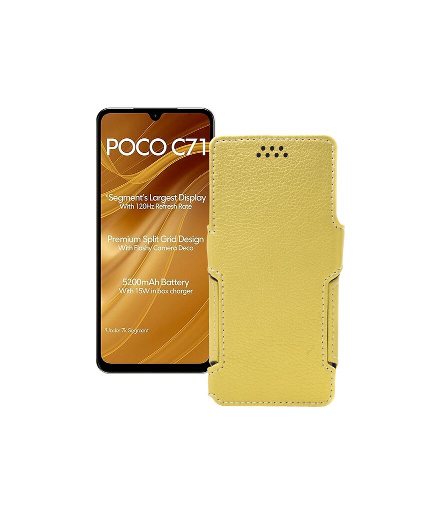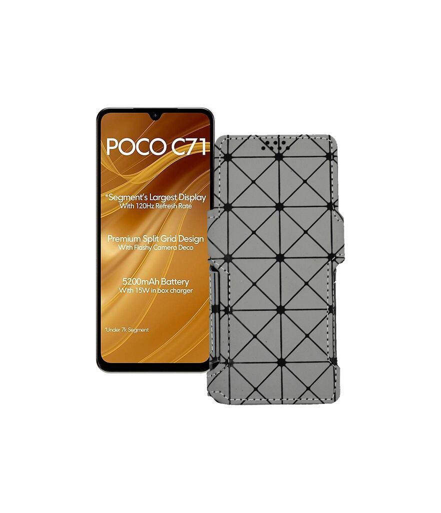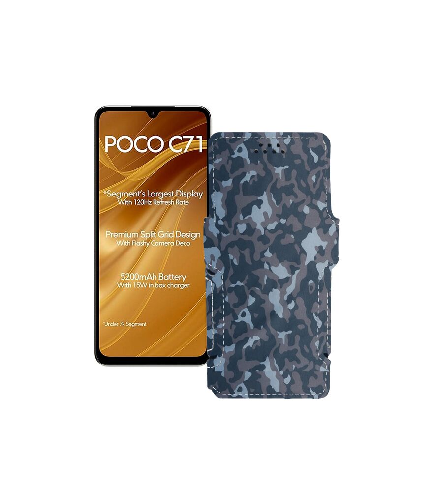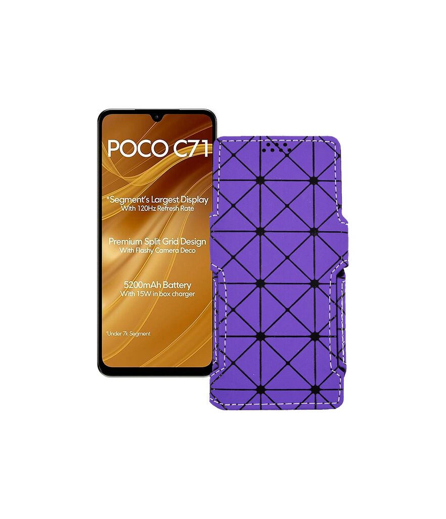 Саме цей чохол-книжка спеціально спроектований під телефон Xiaomi Poco C71. У корпусі чохла вже є всі необхідні вирізи під камери, датчики та роз'єми, що дозволить повноцінно користуватися телефоном у нашому чохлі.Наш продукт спеціально розроблений так, щоб його використання не позначалося на зручності роботи з телефоном.Його легко очищати від зовнішніх забруднень - досить просто його протерти.Завдяки якісним матеріалам, має відмінну зносостійкість.Купуючи цей чохол Ви отримуєте довгостроковий, зручний та стильний захист для свого Xiaomi Poco C71.